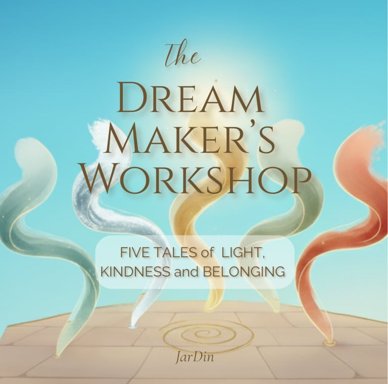 Dream Makers’ Workshop is a luminous collection of five gentle picture-book stories about light, kindness, and the magic of listening.