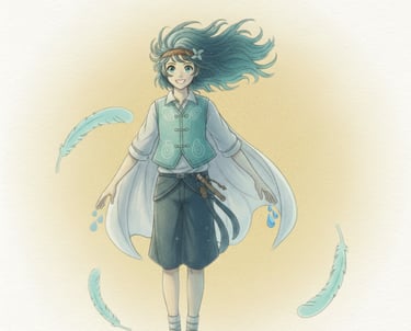 Her clouds change color with each feeling she meets — from soft blue to warm gold.
